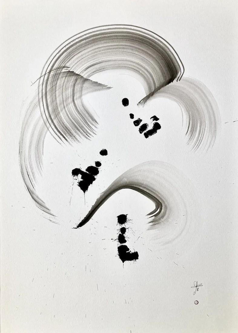 Each piece is a trace of energy — a moment where inner sensation becomes visible, where the body becomes the brush, and where expression emerges from the quiet space beneath thought.